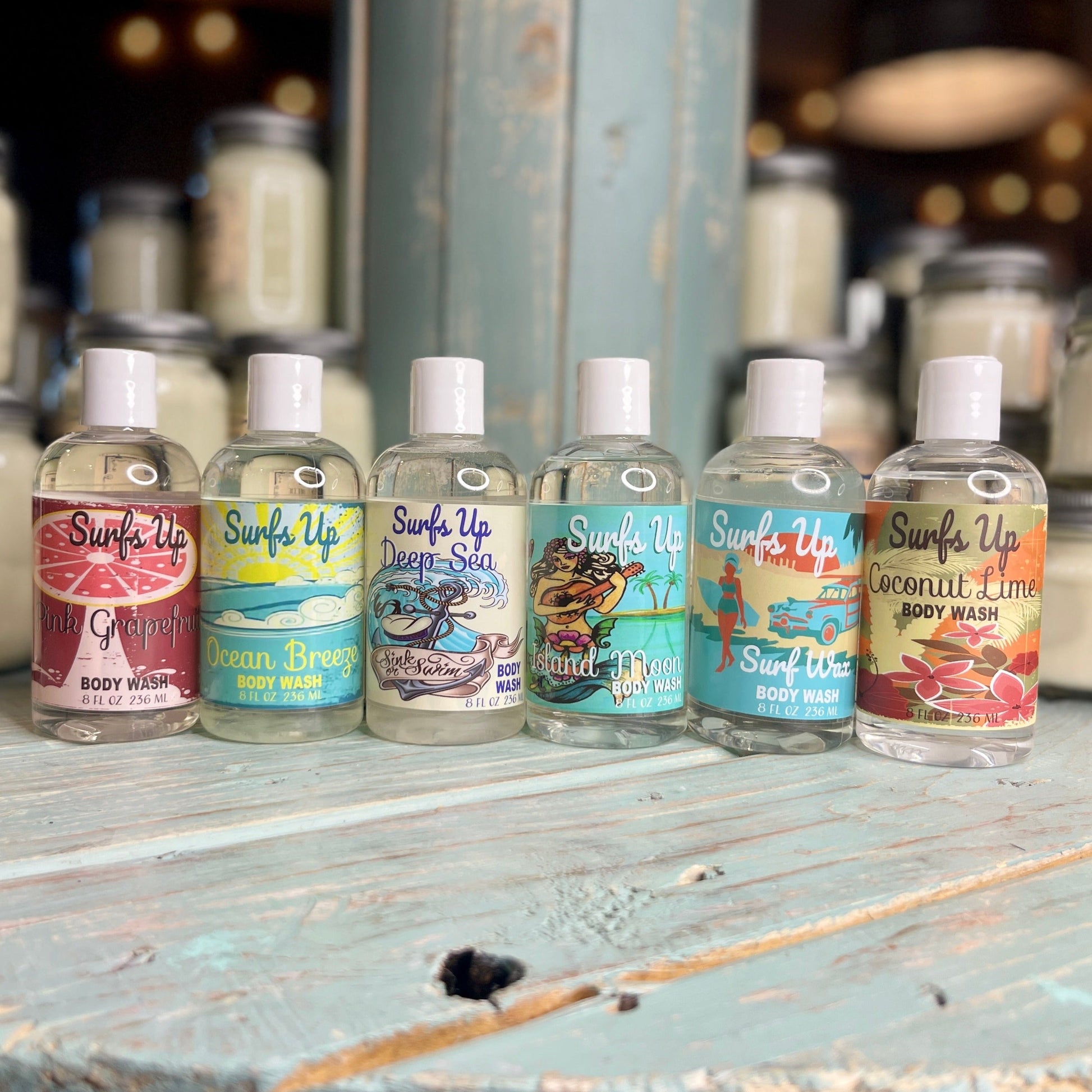 ◾8oz Deep Sea Body Wash Bottle: Our Deep Sea candle will bring the ocean right to you. A mix of citrus, violet, jasmine with hints of amber and sandalwood will have you reminiscing of the tides long after beach season is over.