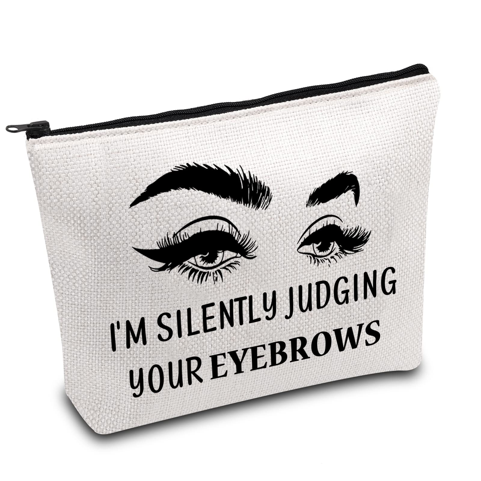 - Bag with Words: I'M SILENTLY JUDGING YOUR EYEBROWS. This makeup bag makes a great birthday gift idea for Makeup Artist, Beautician, Cosmetologist, Beauty Stylist, Aesthetician, Brow Specialist or anyone who works at a salon or spa. Ideal for wife, girlfriend, mom, aunt, sister or a friend.